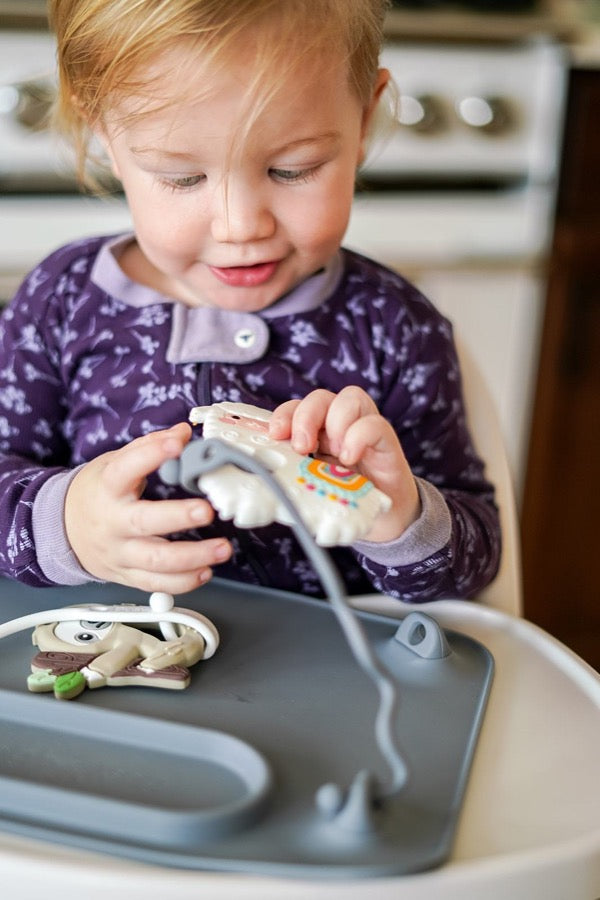 This baby Alpaca teether is a fan favorite! Easily connects to the Busy Baby Mat with our patented tether system. This adorable teething toy is designed with a multi-texture surface, easy grip for your baby’s small hands, and is hypoallergenic and dishwasher-safe.