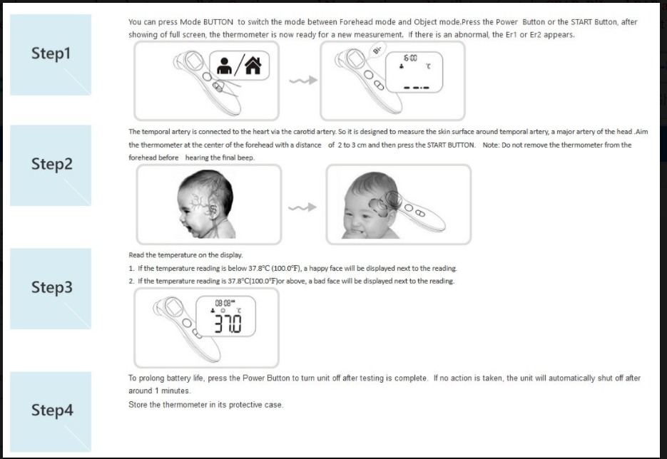 • Measuring temperature range: 89.6-107.6 ° F (32-42 ° C)