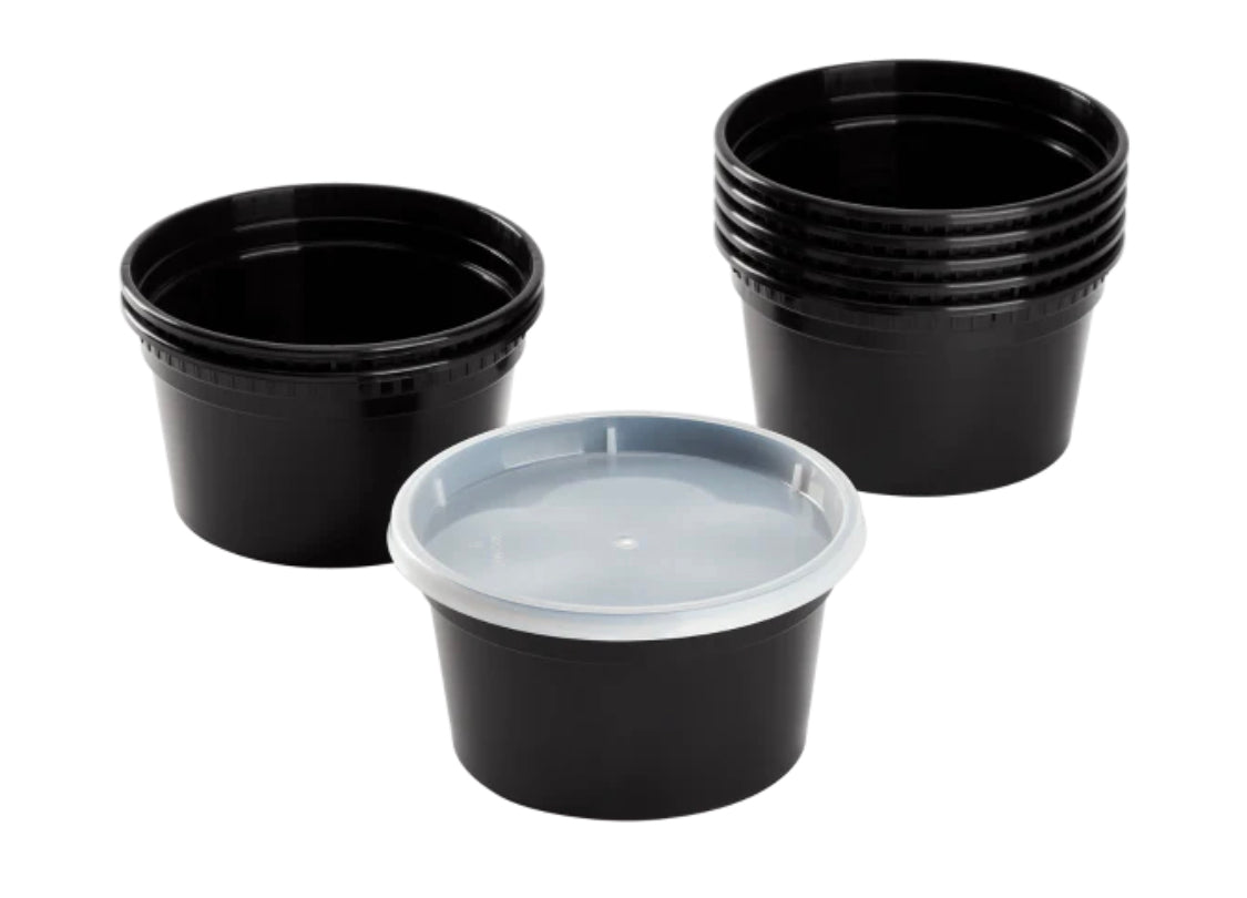 12oz PP Black Plastic Injection Molded Deli Containers & Clear Lids (117mm) - 240 sets