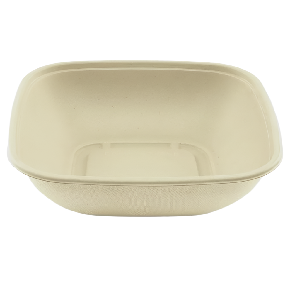 32oz PFAS Free Eco-Friendly Bagasse Square Bowl, Natural - 300 pcs