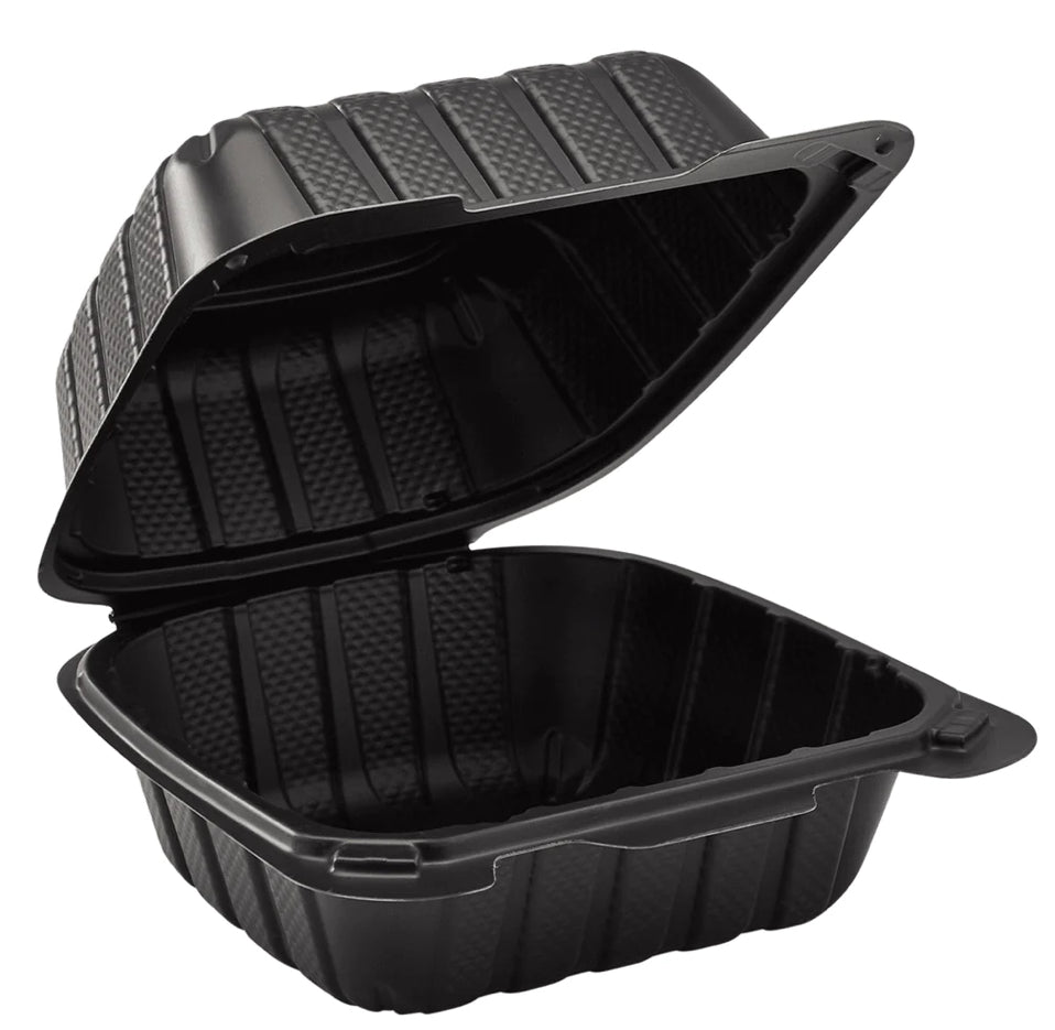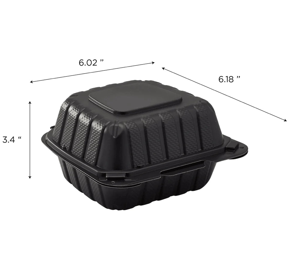 6" x 6" Mineral Filled PP Hinged Container, 1 compartment, Black - 400 pcs