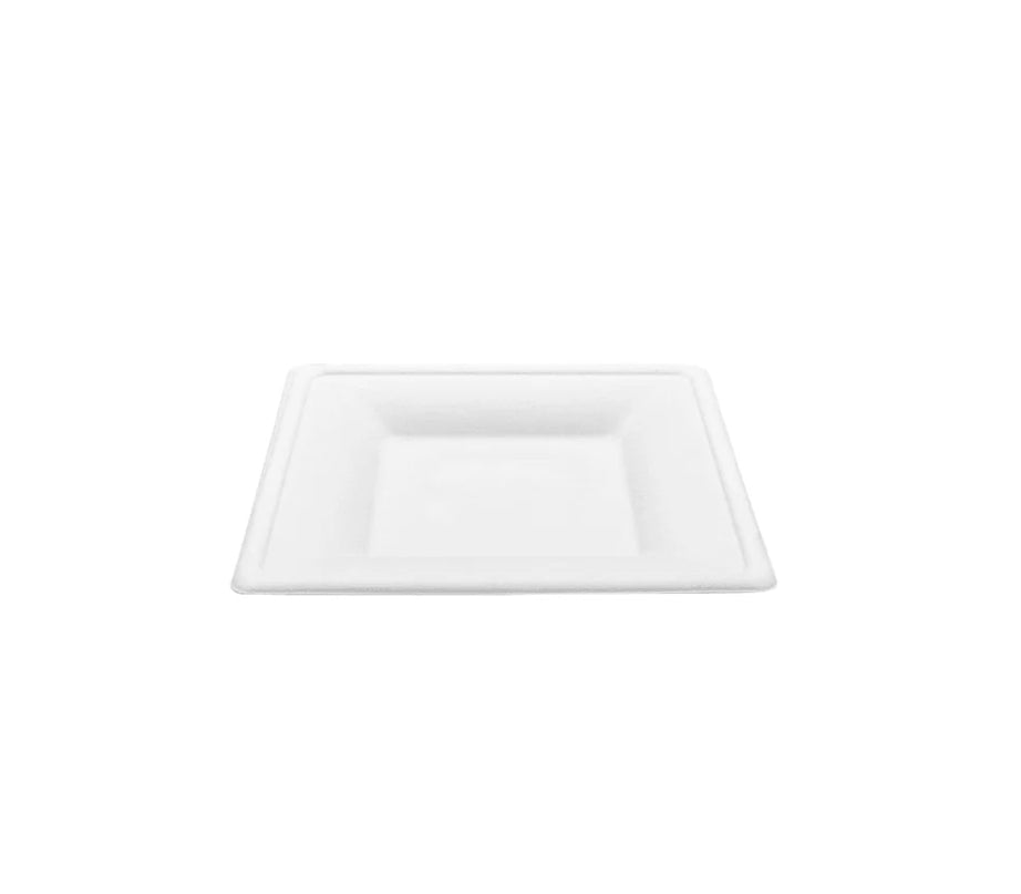 6" PFAS Free Compostable Bagasse Square Plates, White - 500 pcs
