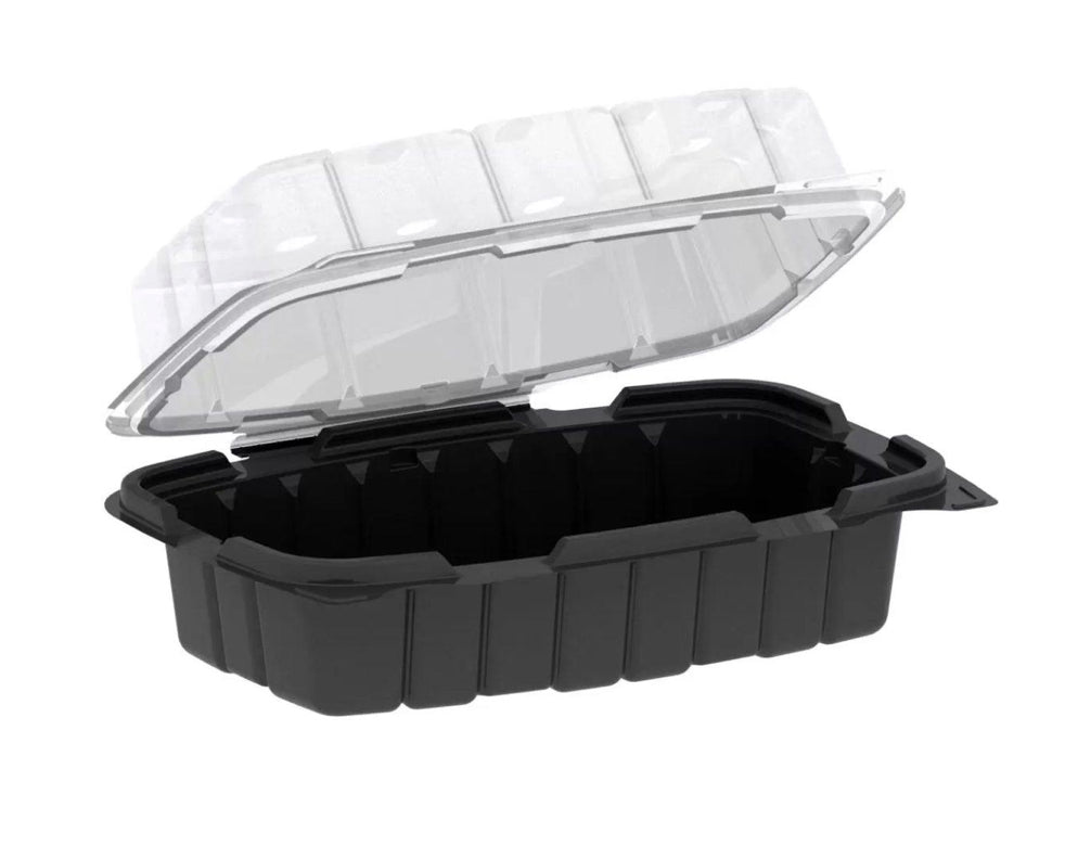 Anchor Deep Hinged Container 9"x 6"x 3.68", Premium PP, Blk w/Clear Top - 110 pcs
