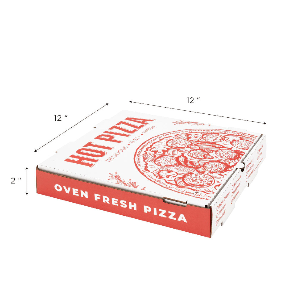 Corrugated Pizza Box, 12''x12''x2'', Generic Print - 50 pcs