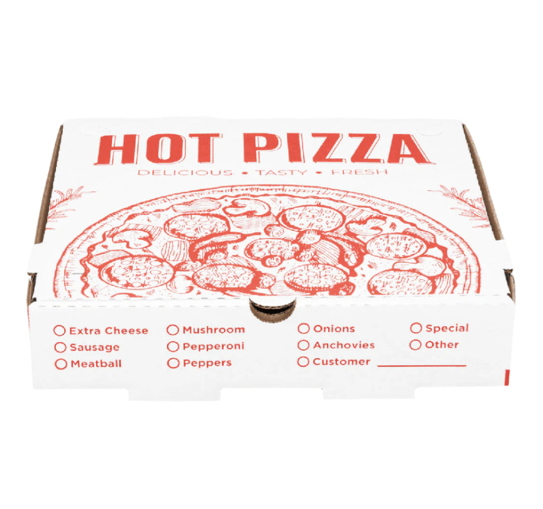 Corrugated Pizza Box, 8''x8''x2'', Generic Print - 50 pcs