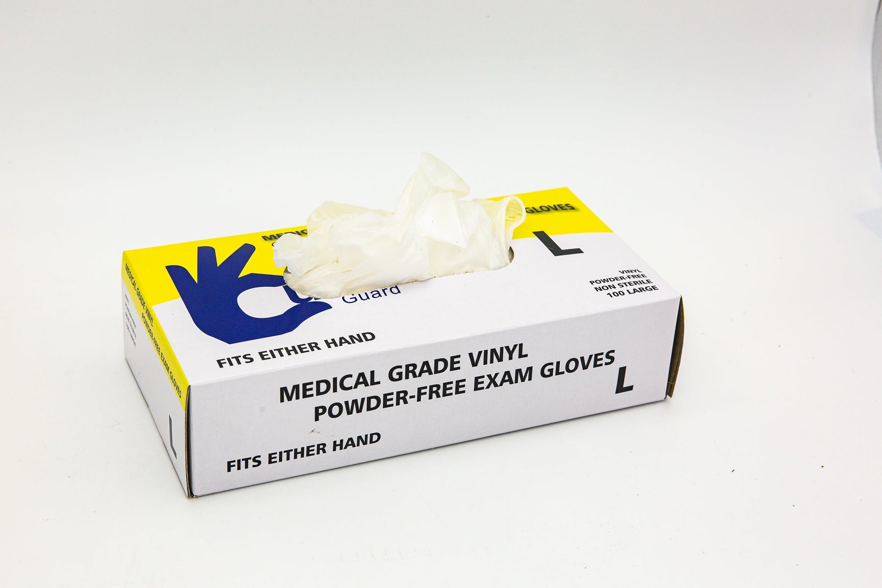 Cureguard Vinyl exam gloves are odor free, latex-free, and hypo-allergenic. They are soft, flexible, and comfortable for short term use or those who need frequent glove changes. Designed with high tactile sensitivity and superior protection. These exam grade gloves meet or exceed ASTM D5250 and EN 455 standards.