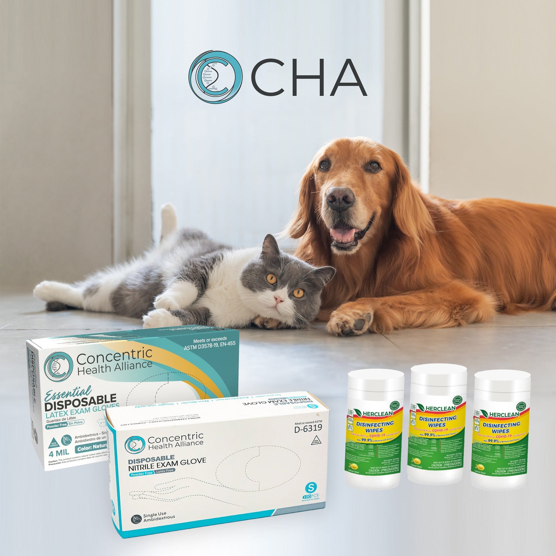 Pet Owners Bundle - Exam Gloves (Latex/Nitrile) + EPA List N Wipes