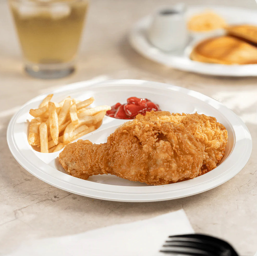 9" Mineral Filled PP Plate, Round, 3-compartment, White - 500 Pcs