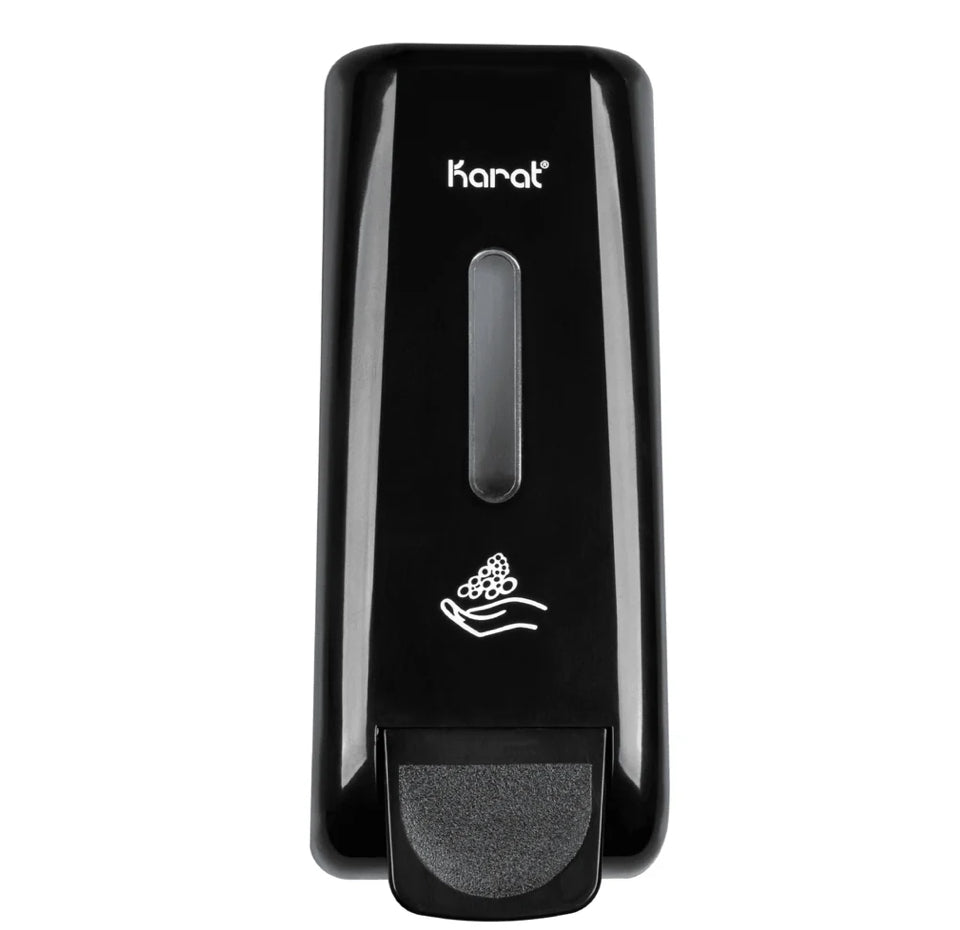 Constructed with durability in mind, the Karat soap dispenser is a superb choice for both residential and commercial settings. Whether you're looking to outfit a restroom, kitchen, or garage, this dispenser's easy-to-use design and refillable bottle make it a practical addition to any space.