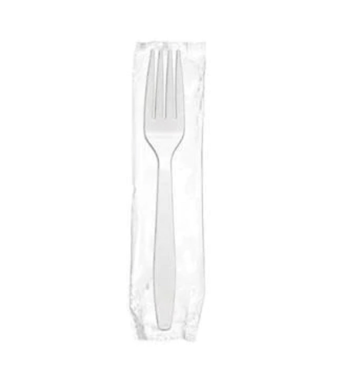 These white individually wrapped forks are made from heavy weight polystyrene plastic. They are disposable, which conveniently eliminates the need for washing after use. These forks are an excellent choice for any restaurant, takeout or catering location looking for a convenient and disposable option.