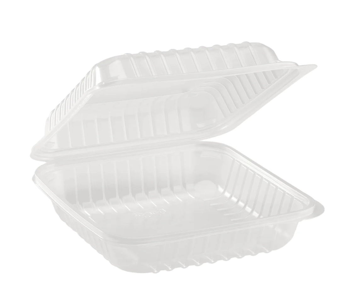 Hinged Container, 8'' x 8" PP Plastic, Clear - 250 pcs