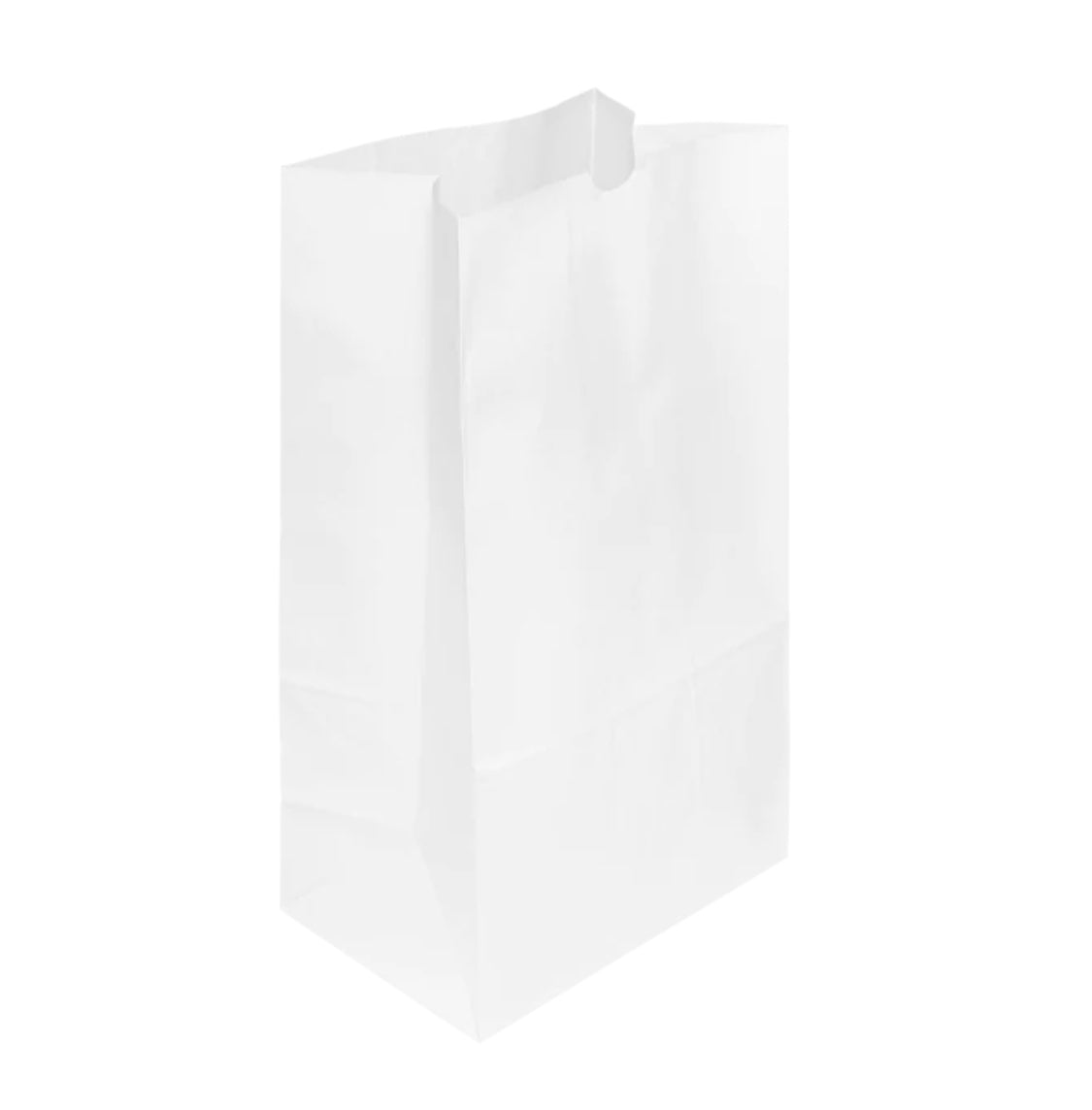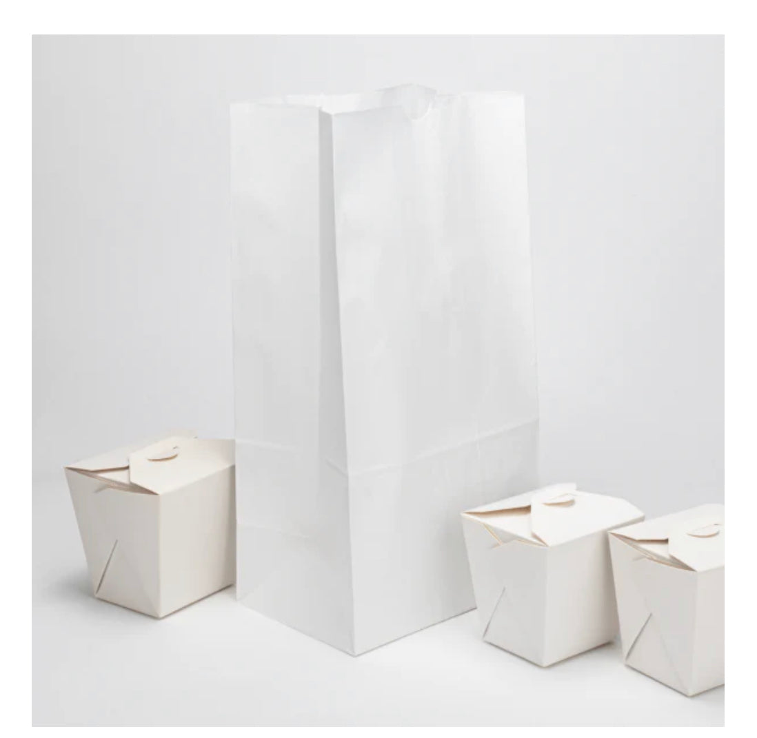 The 20 lb White Paper Bag is a durable and spacious choice for carrying groceries or large takeout orders.